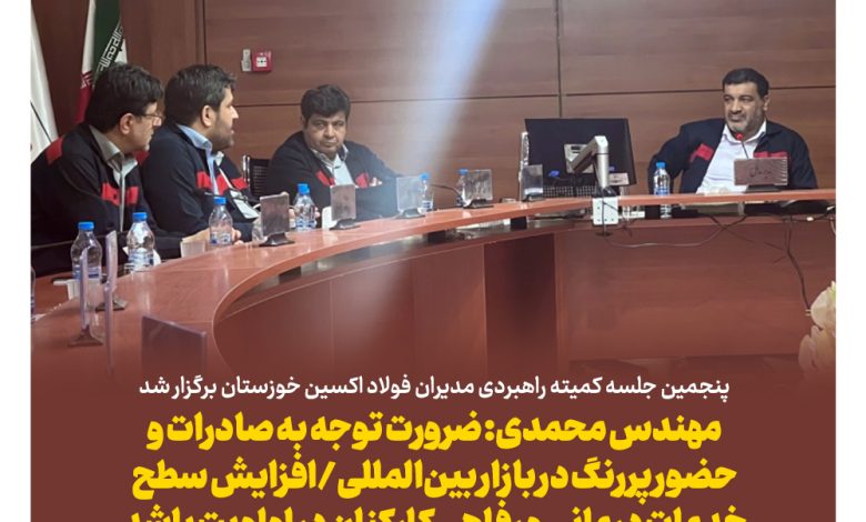 مدیرعامل شرکت فولاد اکسین خوزستان پنجمین جلسه کمیته راهبردی شرکت، توجه به صادرات و حضور پررنگ در بازار بین المللی را ضروری دانست و توجه به معیشت و افزایش سطح خدمات درمانی و رفاهی کارکنان تاکید کرد.